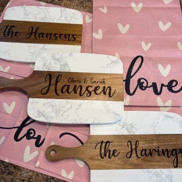 I specialize in creating products for individuals, businesses, organizations, and schools. My favorite projects involve custom laser engraving for home decor, school spirit items, wedding decor, and gift creation.